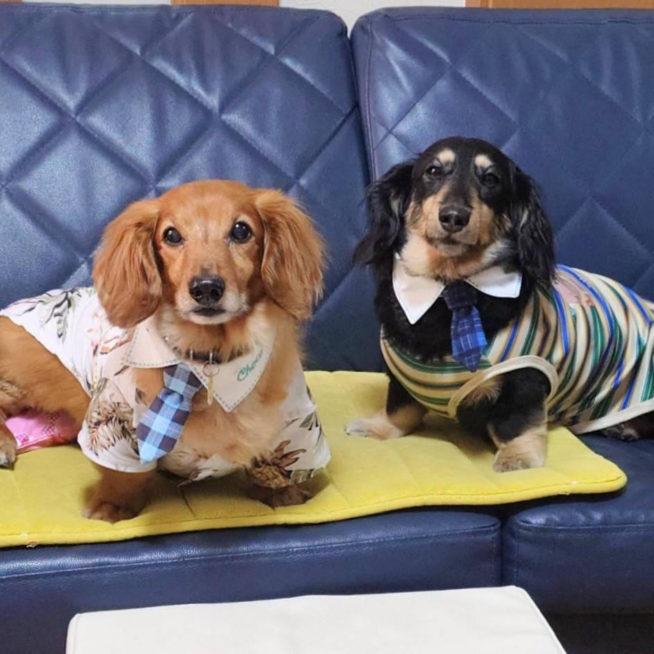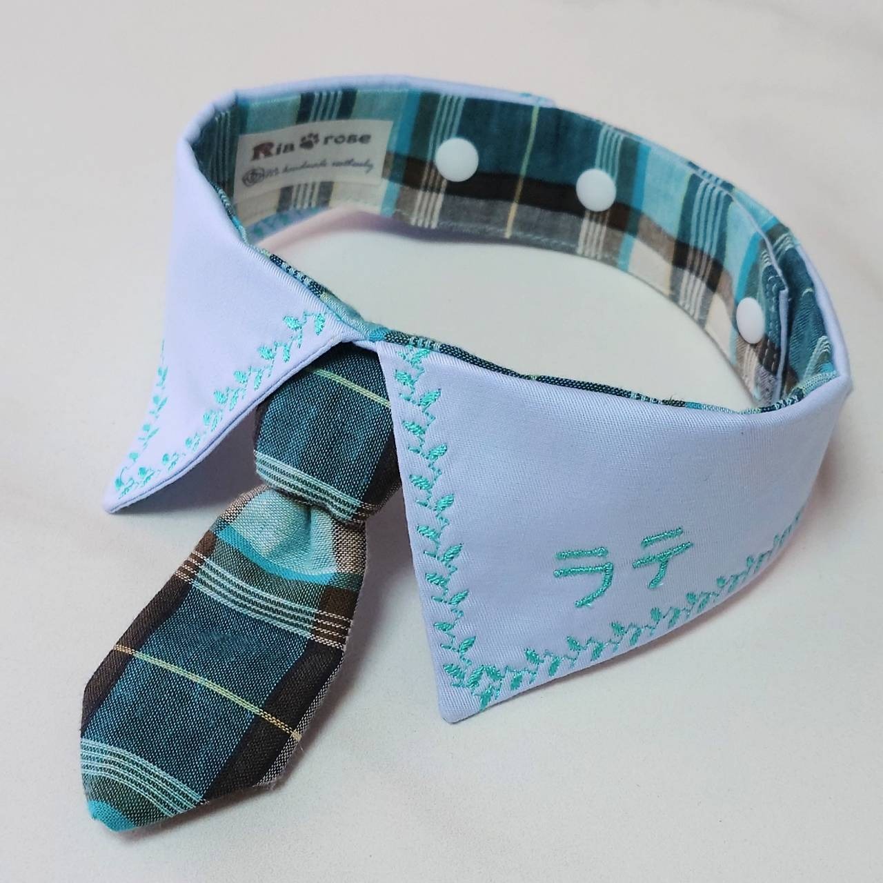 ワンちゃんの首元を彩るシャツ型付け襟。