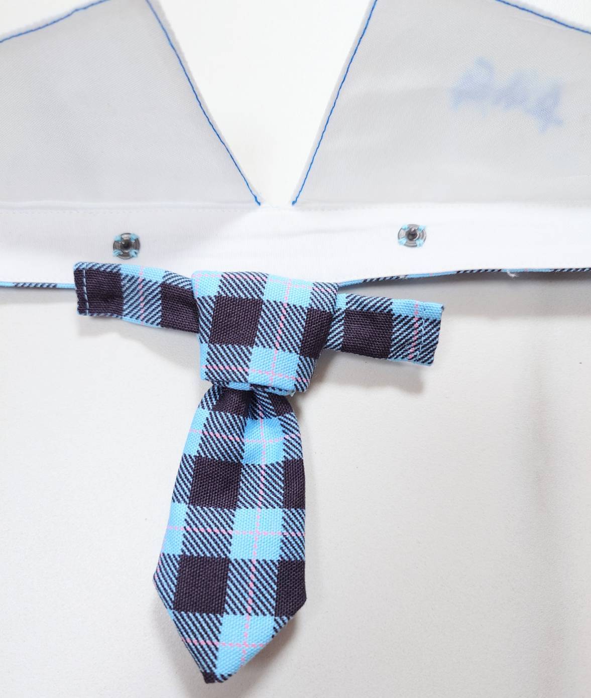 お好きな生地(シャツ部とネクタイorリボン部の2種類)を選んでいただきお作りするオーダーメイド商品です。