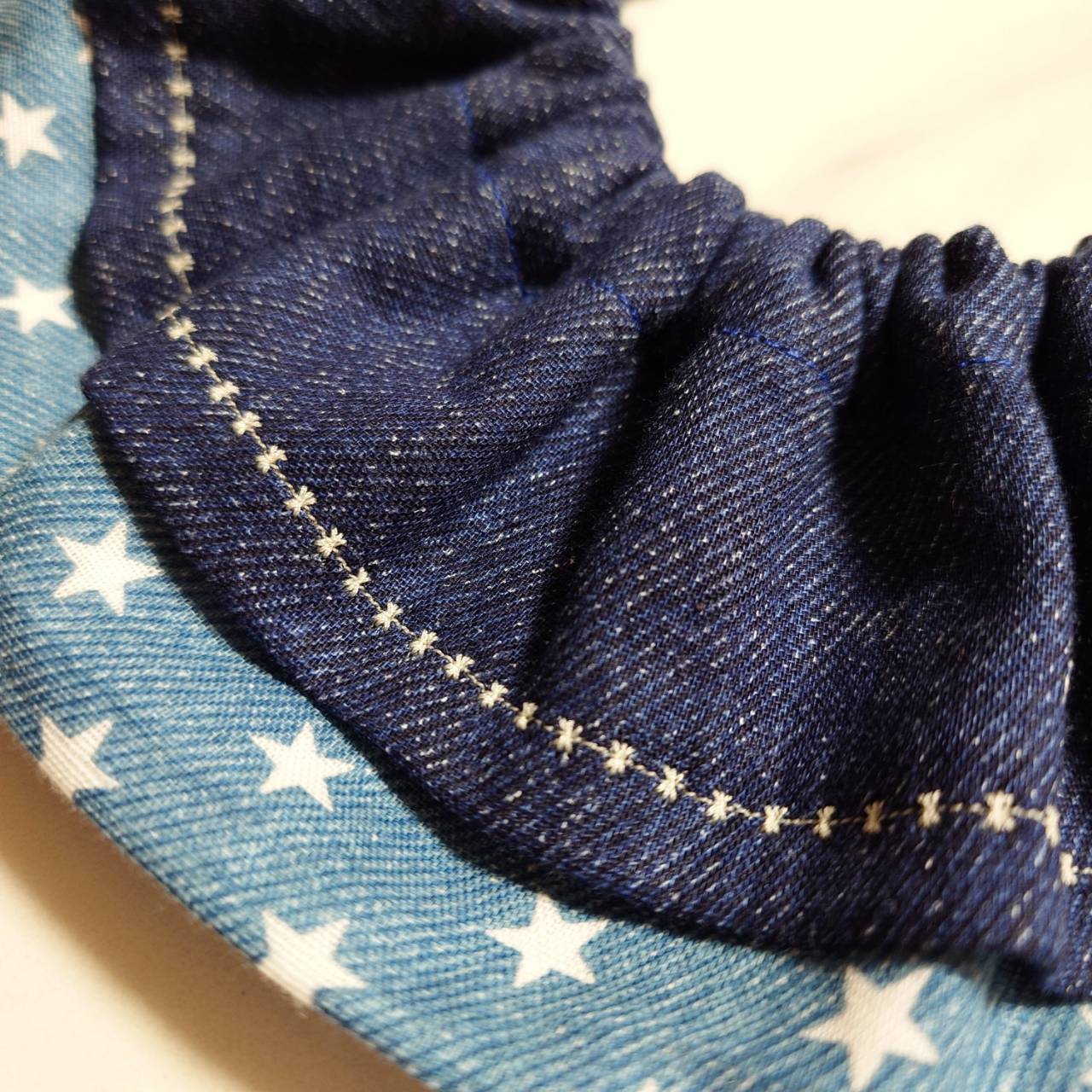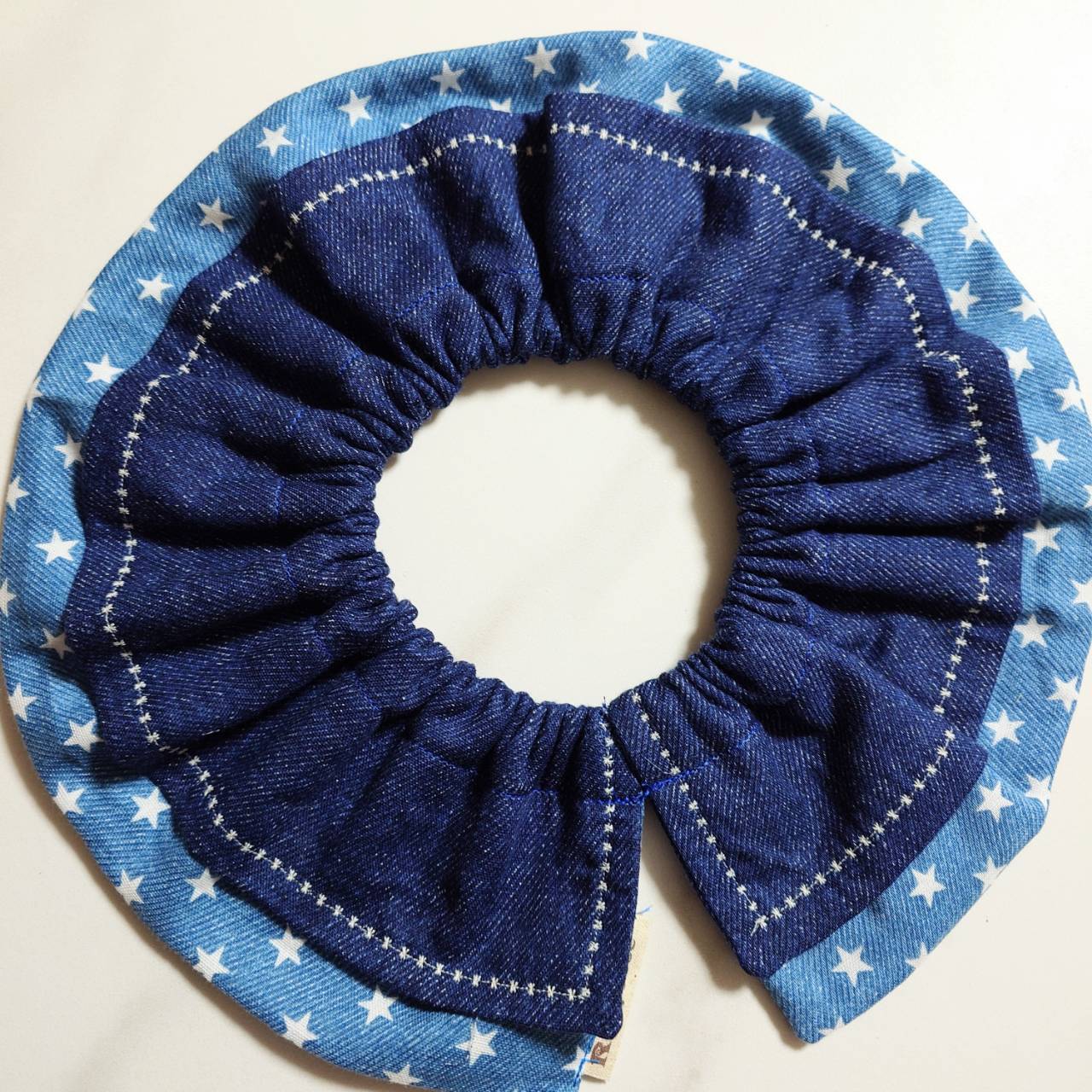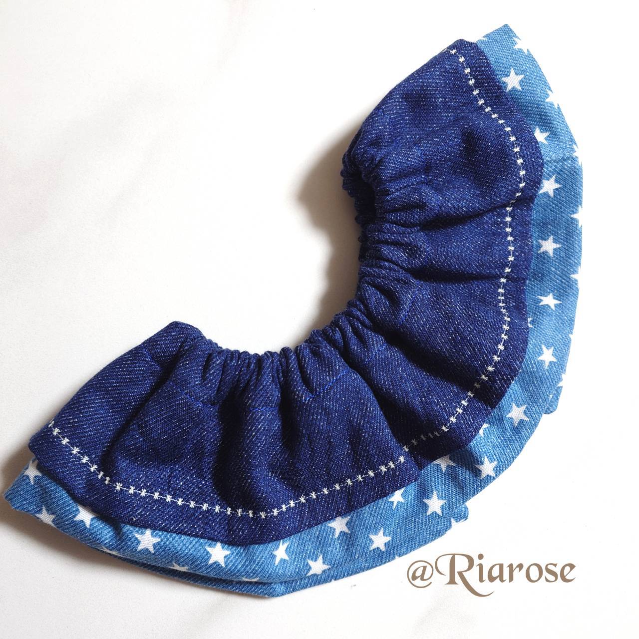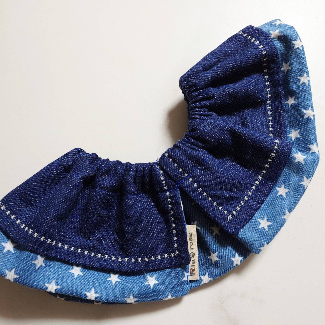 インディゴ系ネイビーにブルー×ホワイト星柄プリントがカッコいいダブルガーゼデニムの2段タイプのアクセサリーです。