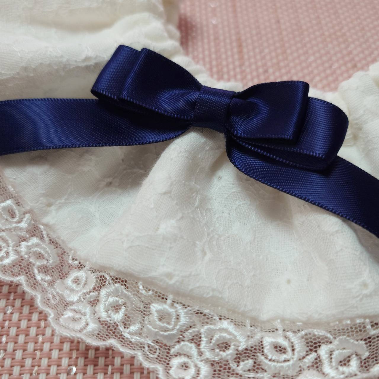 ネイビーのダブルリボンを付けて更にかわいいデザインに仕上げました。