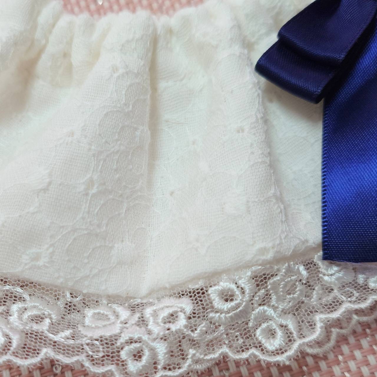 白のコットンレースの裾に薔薇刺繍のチュールレースを飾り付けた可愛いまんまるスタイです。