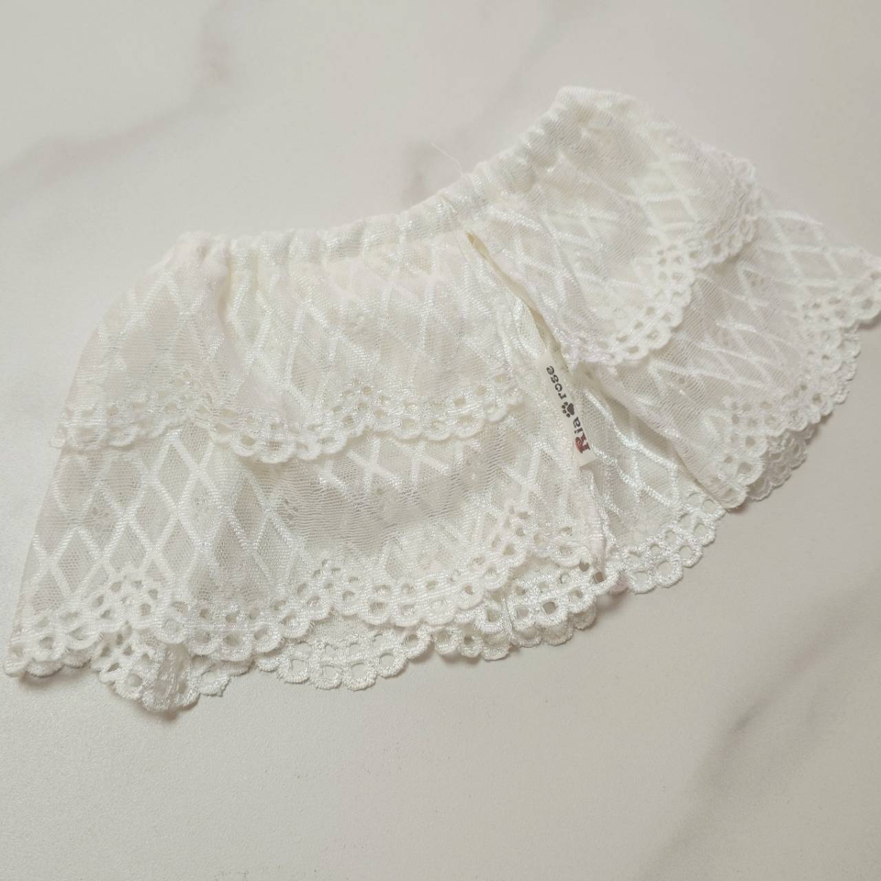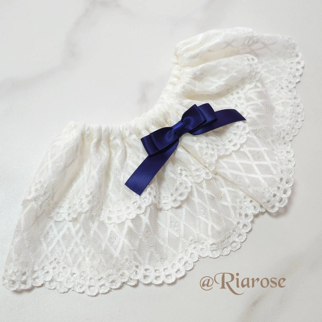 ホワイトストレッチ総レースティアード2段フリルスタイ ネイビーリボン付き シースルーレース かわいい 付け襟 ペット用アクセサリー 犬用ワンちゃん首飾り おしゃれ 小型犬中型犬大型犬 | Riarose