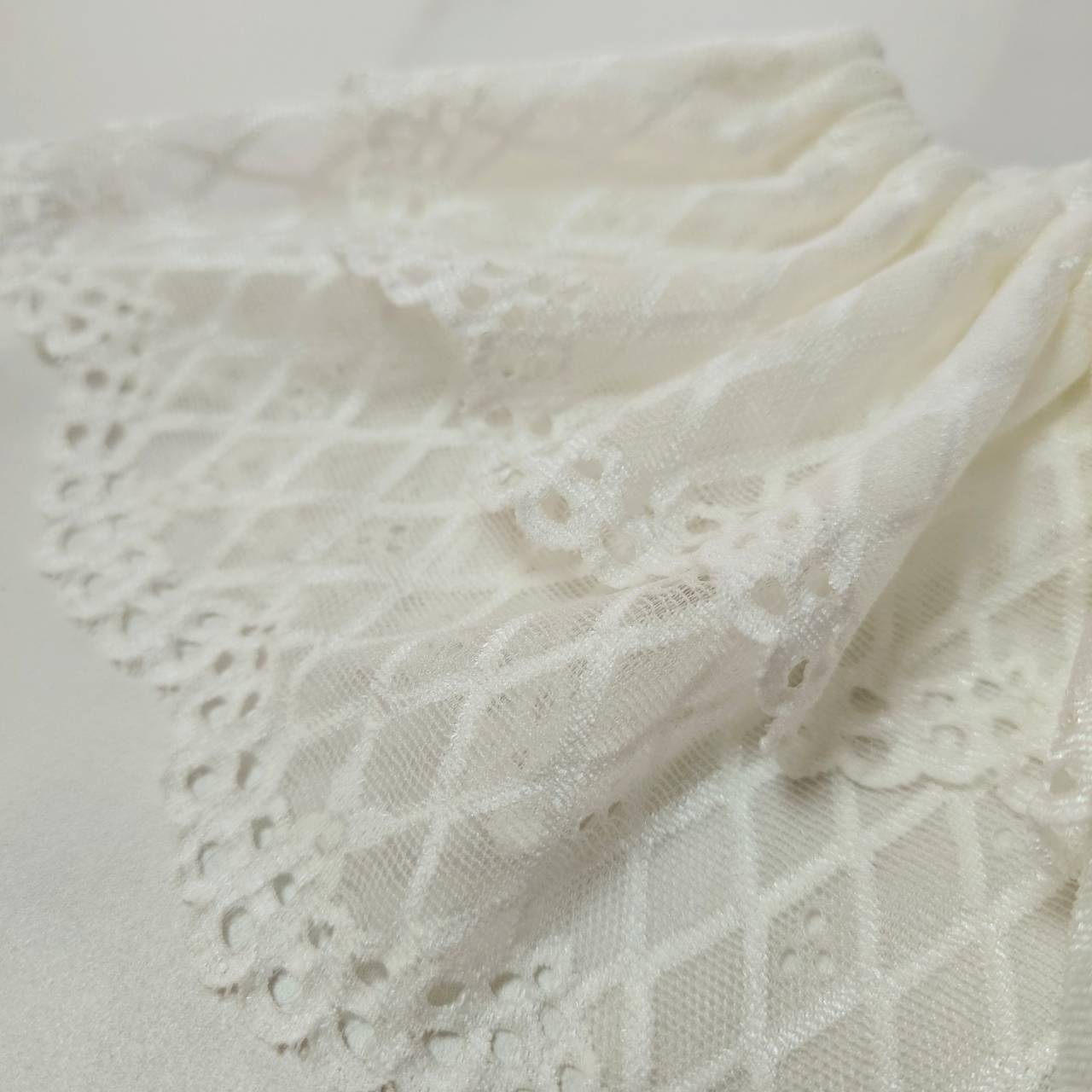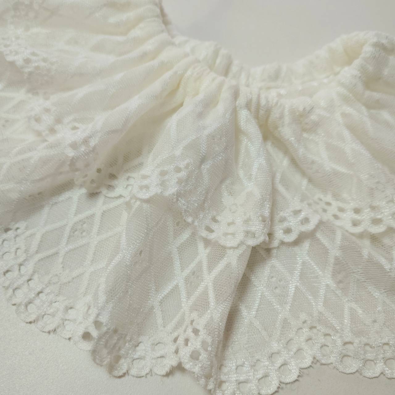 白のストレッチ総レースをティアードフリルスタイルにした可愛いまんまるスタイです。