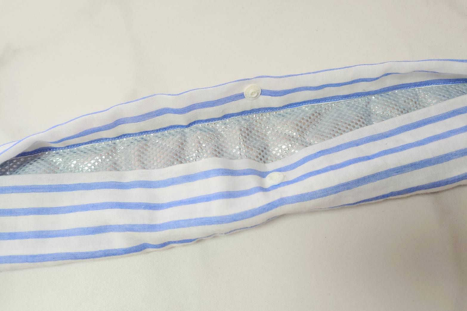 首元を冷やす過ぎないように生地厚みを調節しています。