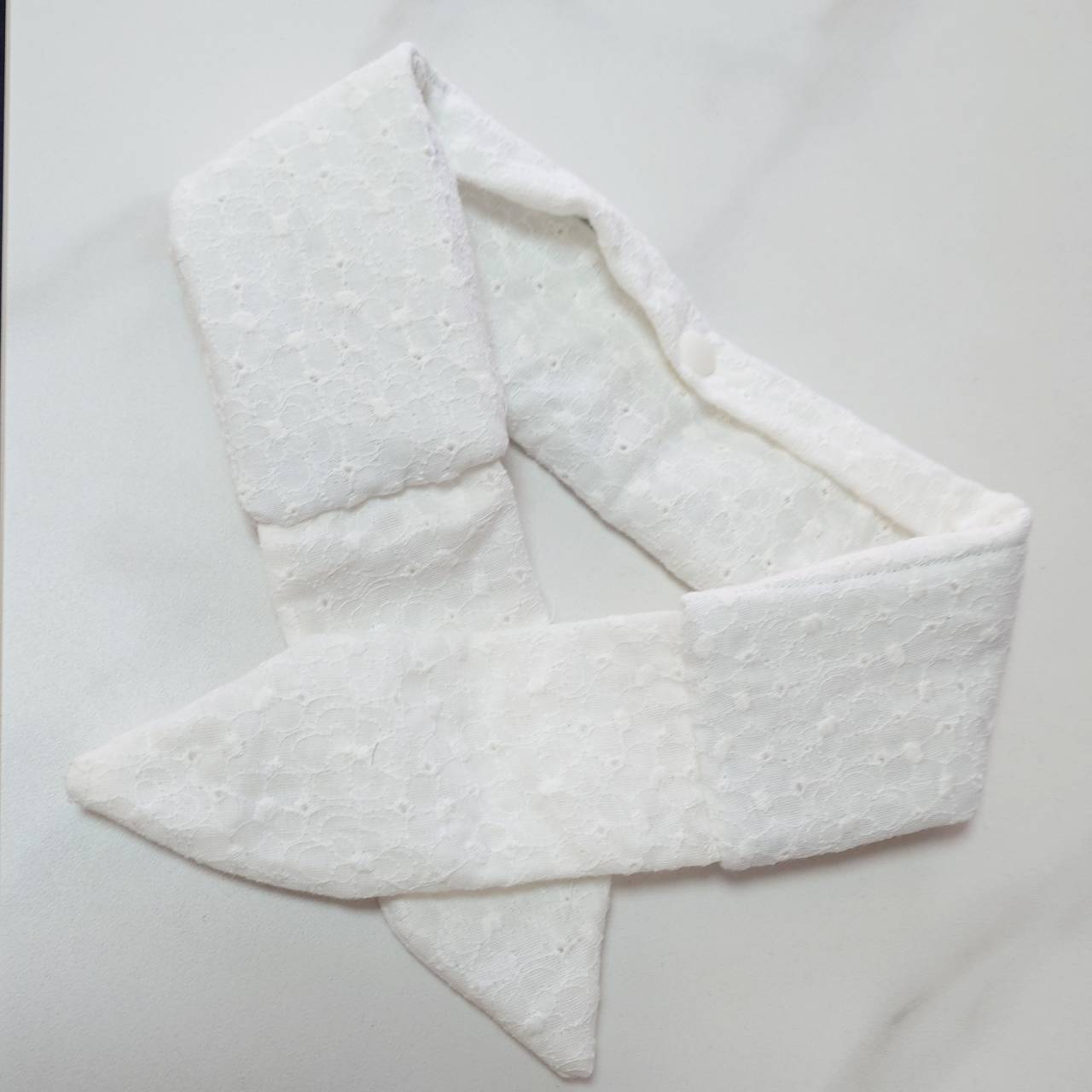 結ぶ必要はなく、お手持ちのヘアゴムやシュシュ、ブローチやバレッタなどで留めていたダウタイプです。